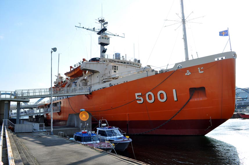 写真は名古屋港水族館の横に係留されている 南極観測船のふじです。 内部は南極観測の資料館になっているのですが 時間が無くて見れませんでした。