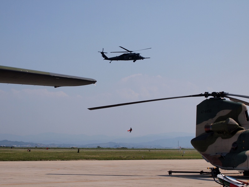 COMMENT美保基地(米子空港)祭りでの、空自のレスキューショットです。 機種は、UH-60J改 ロービジ塗装です。鼻ずらの給油ブームがレアでしょ? 小松所属機かな・・